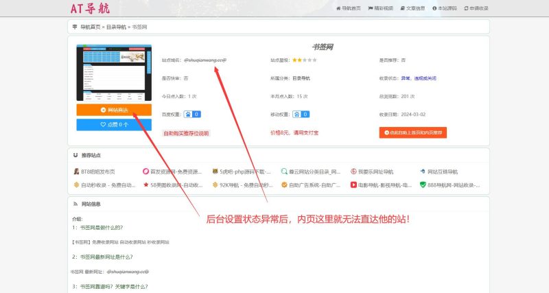 4:违规站,或无法打开的站点,可在后台设置状态异常,不用删除,内页会自动屏蔽对方的网址,只显示标题关键字等,对于SEO很有好处!